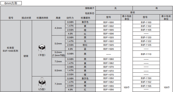 標準型B3F-4000系列、長壽型B3F-5000系列、高信賴型B3F-5001系列