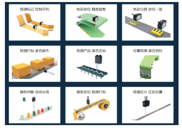 顏色傳感器主要用于檢測目標物體表面顏色,主要在工業(yè)、醫(yī)療和安防系統(tǒng)中有著廣泛的應(yīng)用。常見用途有混料檢測、有無檢測、污漬檢測等等。