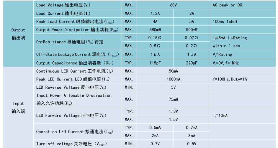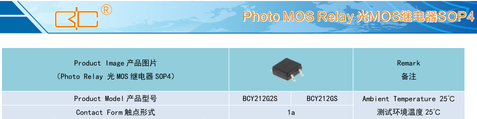 (Relay 光 MOS 繼電器 SOP4),Product Model產(chǎn)品型號(hào):BCY212G2S/BCY212GS,Contact Form 觸點(diǎn)形式:1a,Ambient Temperature 25'C,測(cè)試環(huán)境溫度 25°C