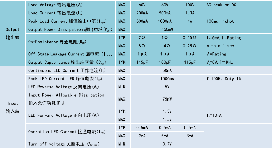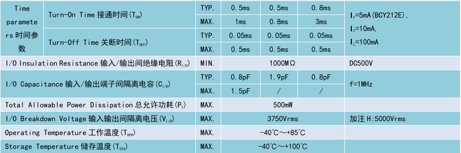 (Relay 光 MOS 繼電器 DIP4/SMD4),Product Model產(chǎn)品型號:BCY212E/BCY212/BCY215G1,Contact Form觸點形式:1a,Ambient Temperature 25C,測試環(huán)境溫度 25℃