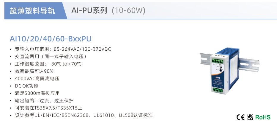 開關電源超薄塑料導軌AI-PU系列10-60W