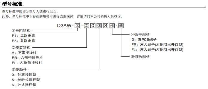 內置電阻,可檢測4種狀態 長行程密封型開關 開關 ON/OFF/短路/斷線 輸出4種狀態 即使無擺桿也便于使用的長行程規格 (OT參考值:1.4mm) 憑借滑動接點結構實現高接觸可靠性和安靜的動作音