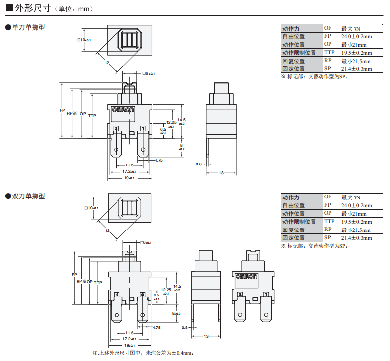 接點(diǎn)間隔3mm以上的小型電源開關(guān) 采用特定的速斷機(jī)構(gòu),可進(jìn)行功率負(fù)載開、閉。開、閉利落、良好的操作感。 確保接點(diǎn)間隔3mm以上。 符合UL、cUL標(biāo)準(zhǔn)、符合EN標(biāo)準(zhǔn)。