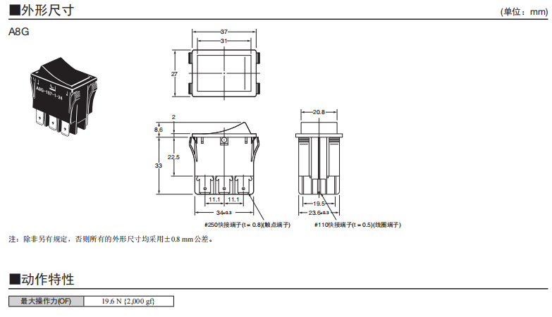 支持外部復位的船形開關 大容量開關功能 由外部信號觸發的節能復位功能。 將20 A開關的獨特開關機構與出色的浪涌電流耐久性相結合。 雙刀雙擲(DPDT)觸點。 3 mm的觸點間隙。 UL和cUL標準認證。 符合EN標準。