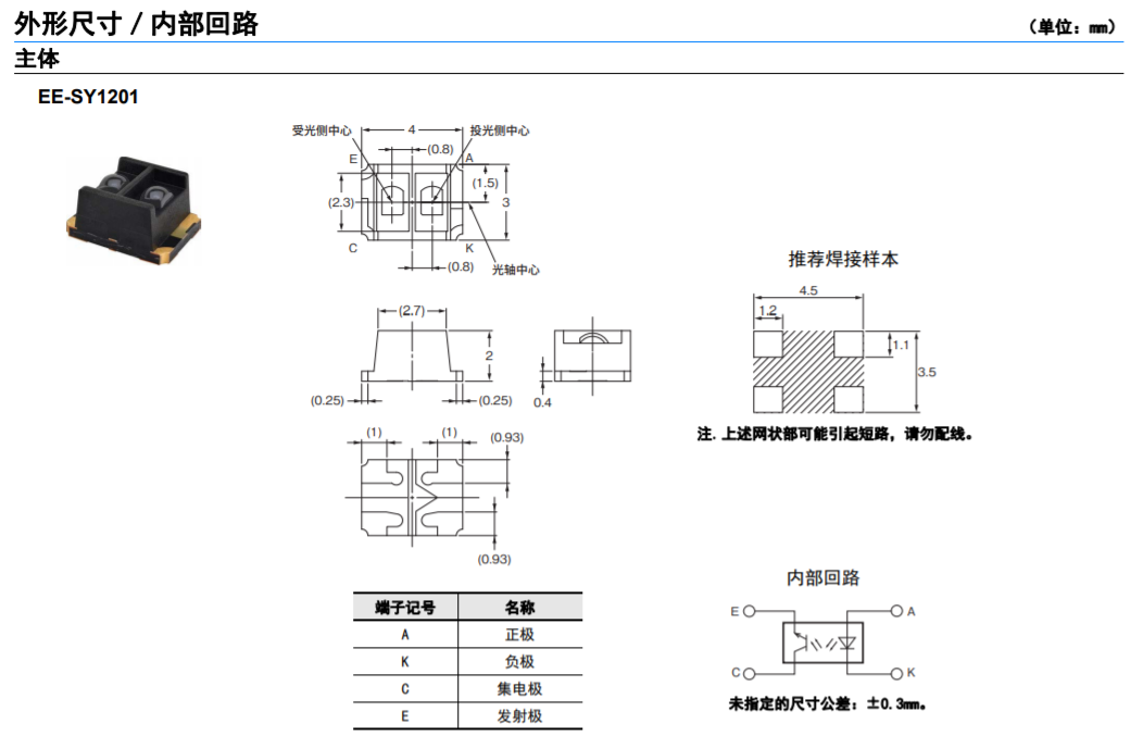 EE-SY1201 微型光電歐姆龍傳感器(反射型)