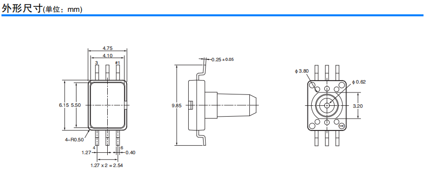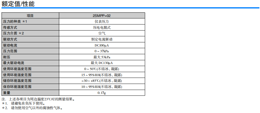 超小型、低功耗的MEMS表壓傳感器 長6.1mm×寬4.7mm×高8.2mm的超小型。 比電容式壓力傳感器更優(yōu)異的電氣特性。 測量壓力范圍為0~37kPa。 偏置電壓:-2.5±4mV 量程電壓:31.0±3.1mV 0.2mW的低功耗。 受溫度影響小。 量程電壓:±1.0 %F.S. 偏置電壓:±3.0%F.S.